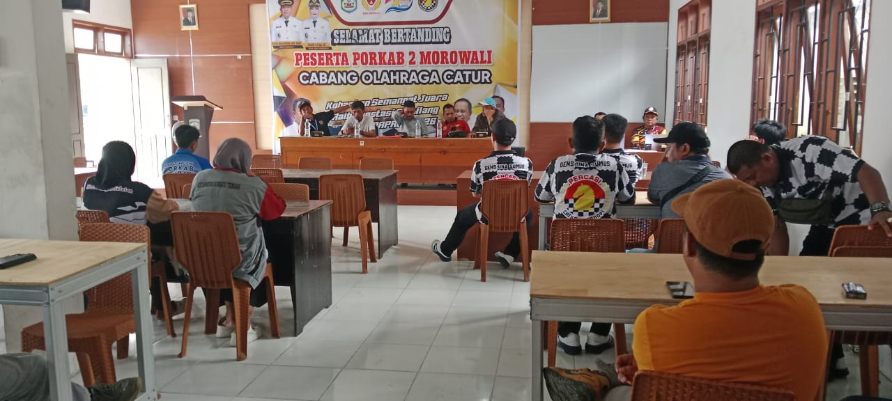 Pembukaan Porkab II cabang catur berlangsung di Aula Kantor Camat Bungku Tengah, Selasa (25/11/2025).
