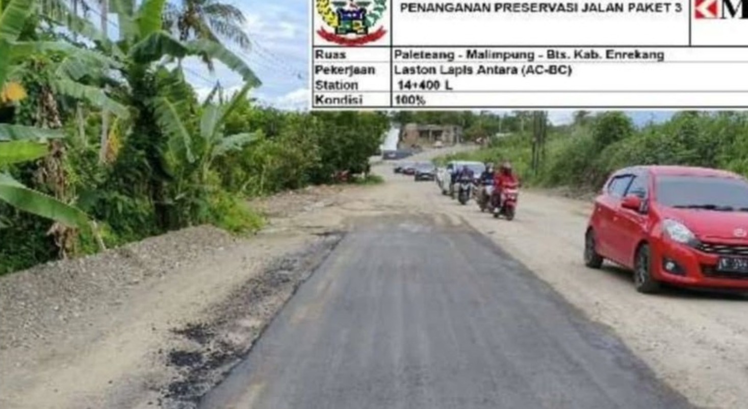 Salah satu ruas yang menunjukkan progres signifikan adalah Jalan Paleteang–Malimpung hingga perbatasan Kabupaten Enrekang.