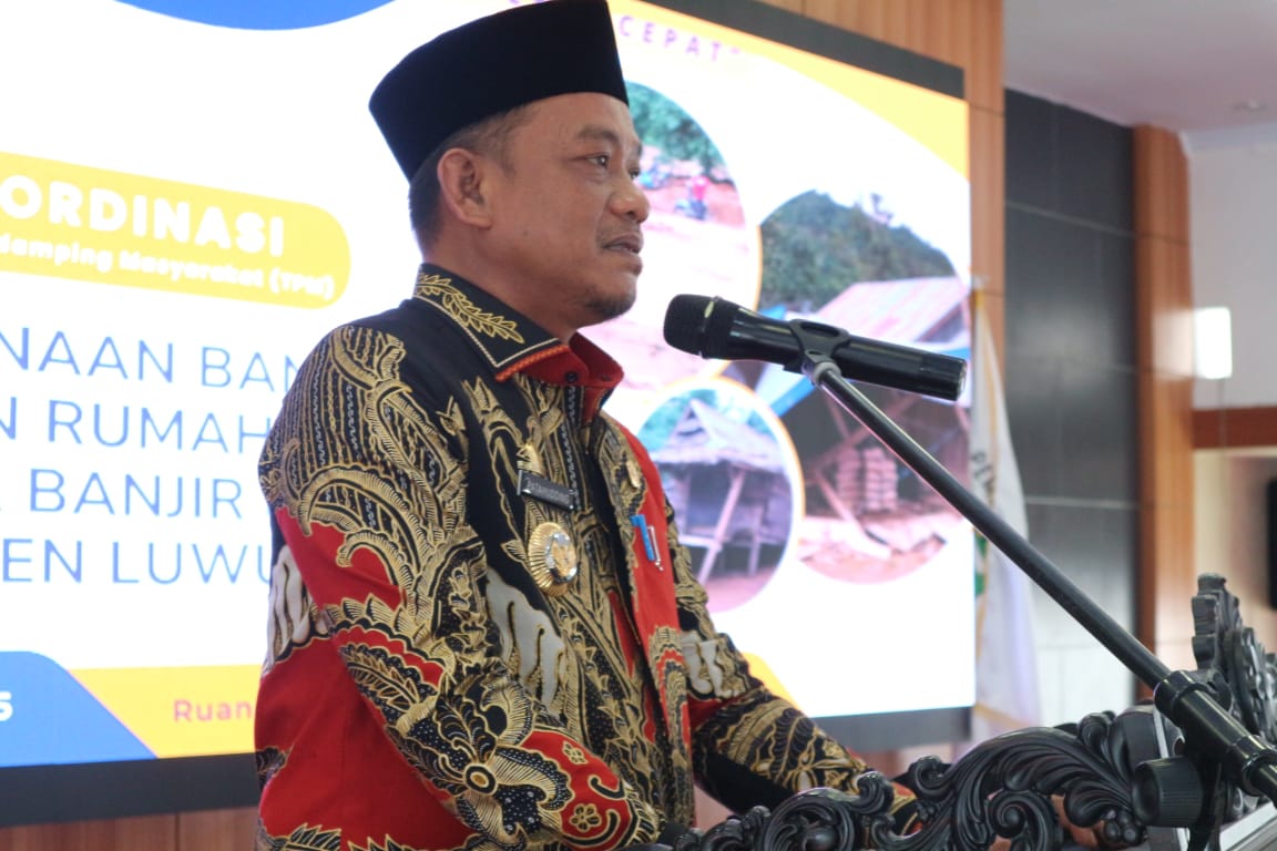 LUWU, TEKAPE.co – Bupati Luwu, H. Patahudding, S.Ag membuka secara resmi Rapat Koordinasi Tim Teknis dan Tim Pendamping Masyarakat (TPM) pelaksanaan bantuan stimulan rumah korban bencana banjir dan tanah longsor Kabupaten Luwu tahun 2024 di aula Andi Kambo, Kompleks Perkantoran Bupati Luwu, pada Kamis, 13 Maret 2025.