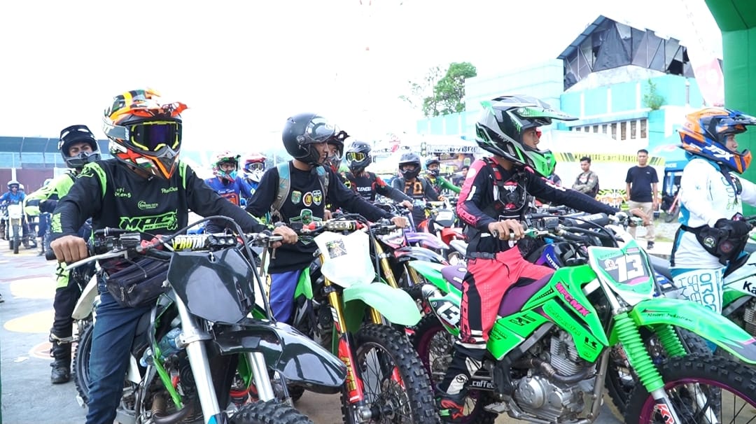 PALOPO, TEKAPE.co – Sekitar 500 penggemar motor trail memadati Kota Palopo, Sulawesi Selatan, Sabtu (13/12/2025).