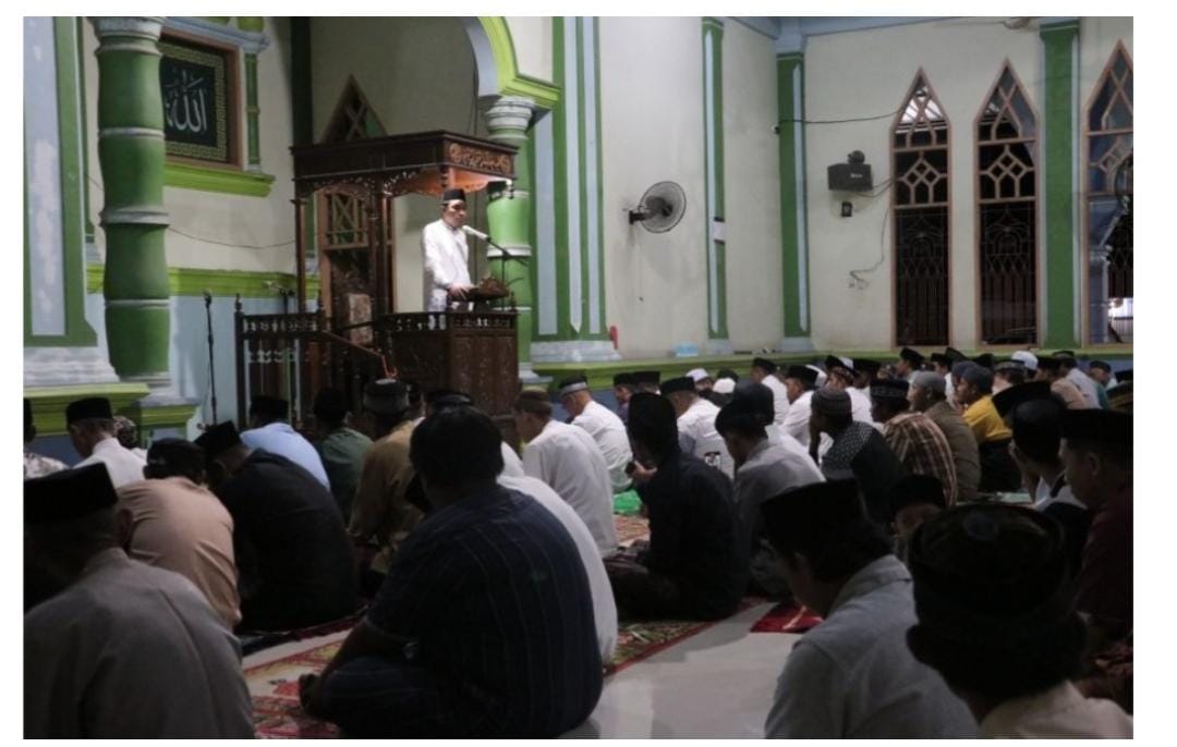 Bupati Luwu Utara, Andi Abdullah Rahim, melakukan Safari Ramadan sekaligus salat Isya dan Tarawih berjamaah di Masjid At-Taufiq, Kecamatan Tanalili, Jumat (7/3/2025). (hms)