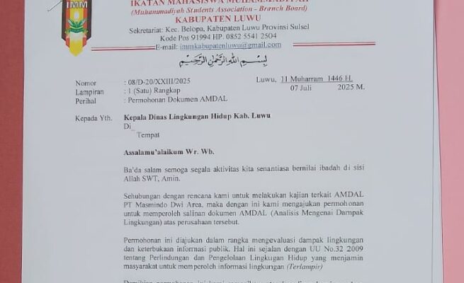 IMM Luwu Desak DLH Buka Dokumen AMDAL PT Masmindo: Investasi Tak Boleh Tutupi Hak Rakyat