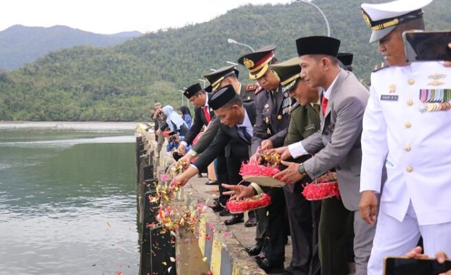 Bersama Wabup Djira, Kabag Ops Polres Morut Pimpin Upacara Tabur Bunga di Pelabuhan Kolonodale