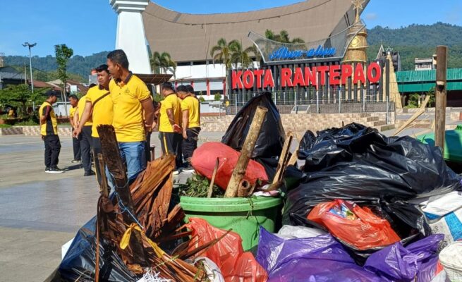 Polres Toraja Utara Gelar Kerja Bakti di Alun-alun Rantepao Dukung Program Indonesia Bersih