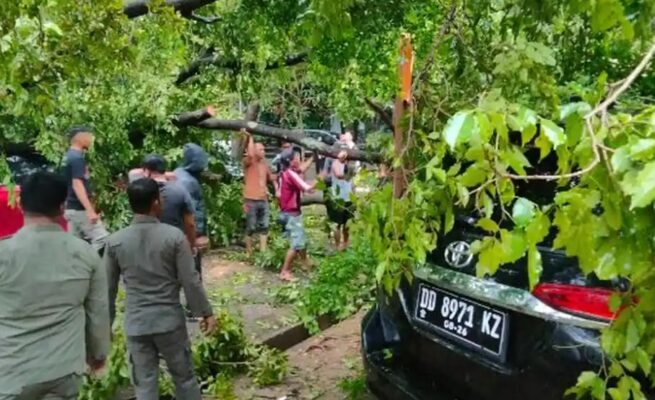Pohon Tumbang di Kantor Gubernur Sulsel, Empat Mobil Ringsek