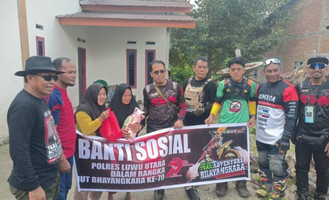 One Day Trail Adventure HUT Bhayangkara ke-79, Polres Luwu Utara Sisipkan Aksi Sosial di Desa Pincara