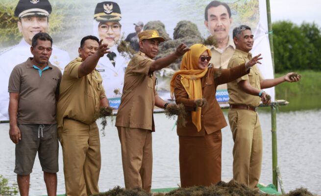 Wabup Lutim Tebar Bibit Rumput Laut Gracilaria di Lakawali Pantai