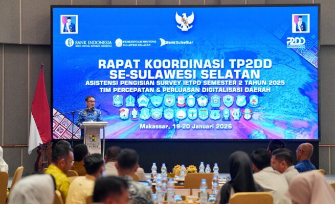 Sekda Sulsel Buka Rakor TP2DD, Dorong Percepatan Digitalisasi Transaksi Pemerintah Daerah