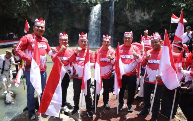 Pemkab Asahan Kibarkan Ratusan Bendera Merah Putih di Air Terjun Simonang – Monang