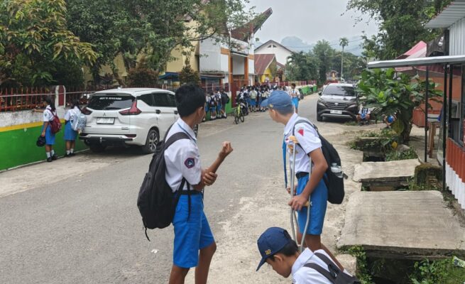 Siswa SMPN 2 Rantepao Protes Jadwal Buka-Tutup Gerbang, Terpaksa Menunggu di Bahu Jalan