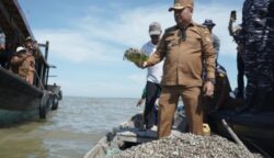 Wabup Asahan Bersama Danlanal dan Satpol Air Tabur Benih Kerang Dara di Pesisir Desa Silo Baru