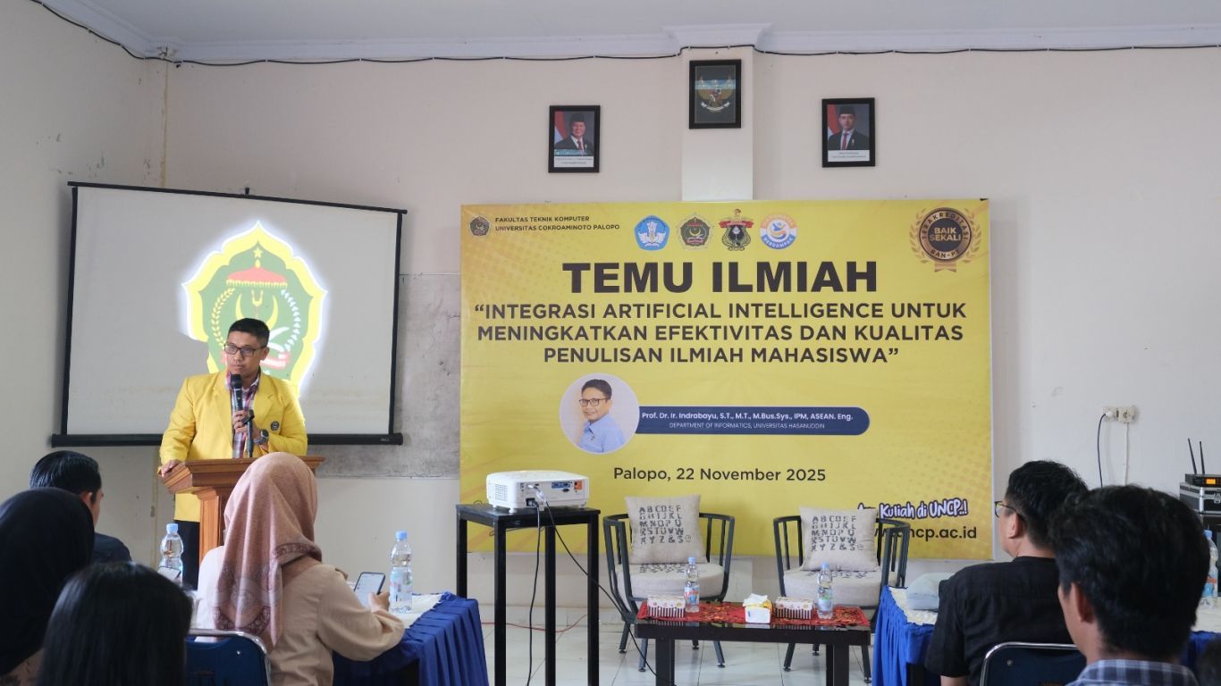 PALOPO, TEKAPE.co – Fakultas Teknik Komputer (FTKOM) Universitas Cokroaminoto Palopo (UNCP) menggelar Temu Ilmiah bertema “Integrasi Artificial Intelligence untuk Meningkatkan Efektivitas dan Kualitas Penulisan Ilmiah Mahasiswa” di Aula B Kampus 1 UNCP, Sabtu (22/11/2025).