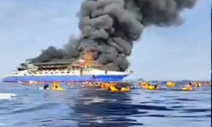 SULUT, TEKAPE.co – Kebakaran hebat melanda KM Barcelona V yang tengah berlayar dari Pulau Talaud menuju Kota Manado, Sulawesi Utara, Minggu 20 Juli 2025.