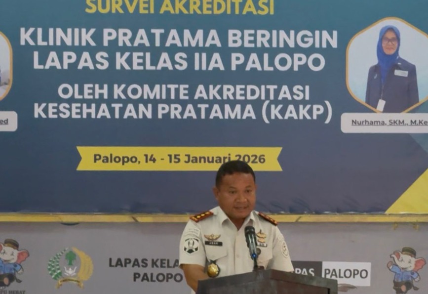 PALOPO, TEKAPE.co – Klinik Pratama Beringin di Lembaga Pemasyarakatan (Lapas) Kelas IIA Palopo menjalani survei akreditasi kesehatan oleh Komite Akreditasi Kesehatan Pratama, Rabu (14/1/2026).