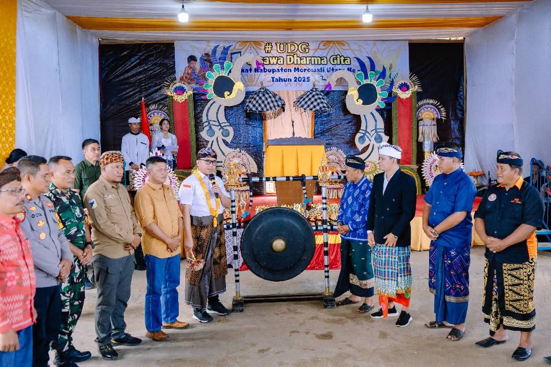 SOYOJAYA, TEKAPE.co – Bupati Morowali Utara, Delis Julkarson Hehi, secara resmi membuka Utsawa Dharma Gita (UDG) ke-7 tingkat Kabupaten Morowali Utara (Morut)yang dipusatkan di Desa Panca Makmur, Kecamatan Soyojaya, Sabtu (22/11/2025).