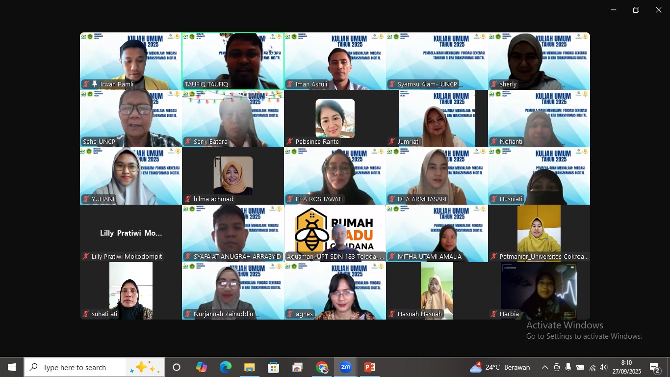 Penyambutan mahasiswa baru Program Magister (S2) Pendidikan Matematika, Sabtu (27/9/2025). Berlangsung secara virtual diikuti 28 mahasiswa baru dan sivitas akademika Fakultas Keguruan dan Ilmu Pendidikan (FKIP) UNCP.