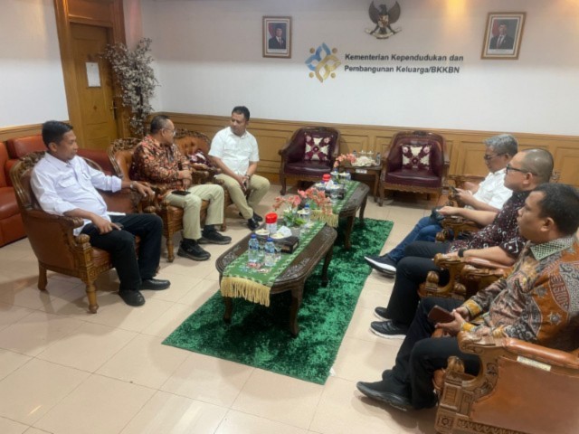 Kemudian rombongan melakukan kunjungan resmi ke Deputi Keluarga Berencana dan Kesehatan Reproduksi (KBKR) BKKBN RI Dr. Drs. Wahidin M.Kes untuk membahas percepatan program Bangga Kencana dan penguatan intervensi penurunan stunting di Kabupaten Asahan.