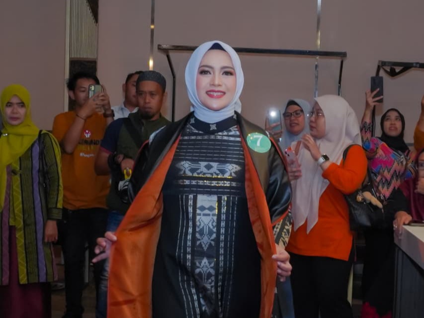 Wakil Ketua Dekranasda Luwu Pamerkan Gaun Motif Luwu di UMKM FI3STA 2025