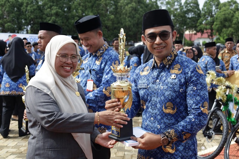 MALILI, TEKAPE.co — Wakil Ketua II DPRD Kabupaten Luwu Timur, Hj Harisa Suharjo, turut hadir sekaligus menyerahkan penghargaan kepada para wajib pajak berprestasi tahun 2024 pada puncak peringatan Hari Ulang Tahun ke-54 Korps Pegawai Republik Indonesia (KORPRI) yang berlangsung di Lapangan Pendidikan Malili, Senin (01/12/2025).