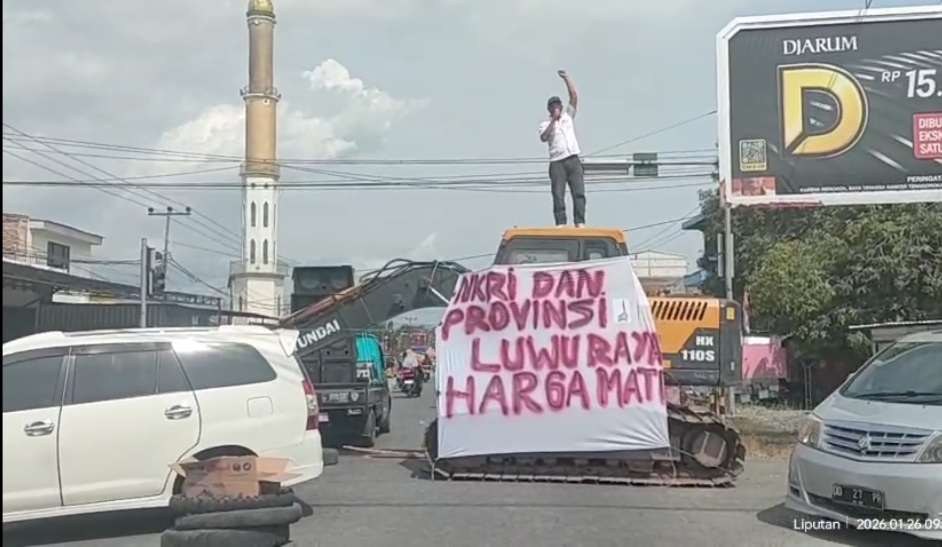 LUWU, TEKAPE.co – Aksi tuntutan pemekaran Daerah Otonom Baru (DOB) Luwu Tengah dan pembentukan Provinsi Luwu Raya kembali terjadi di Kabupaten Luwu, Sulawesi Selatan. Kali ini, warga Padang Sappa memblokade jalan nasional menggunakan alat berat berupa ekskavator, Senin, 26 Januari 2026.